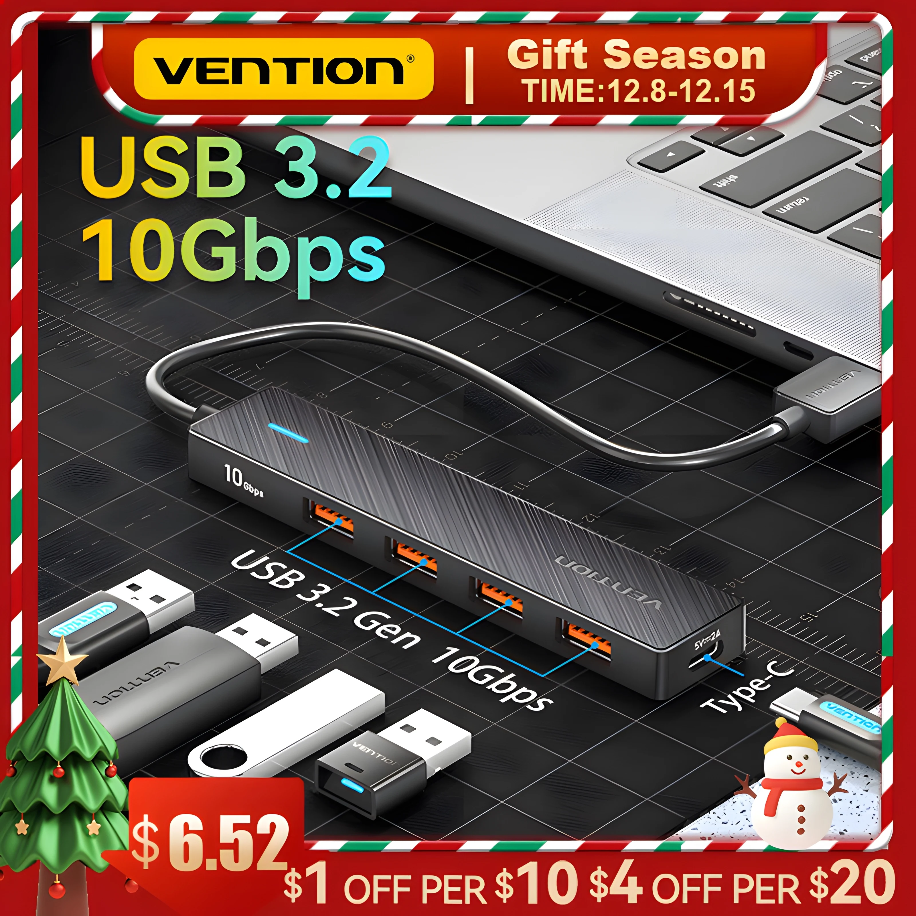 VENTION 4 Ports NEW USB3.2 HUB 10Gbps is on Hot Sale.